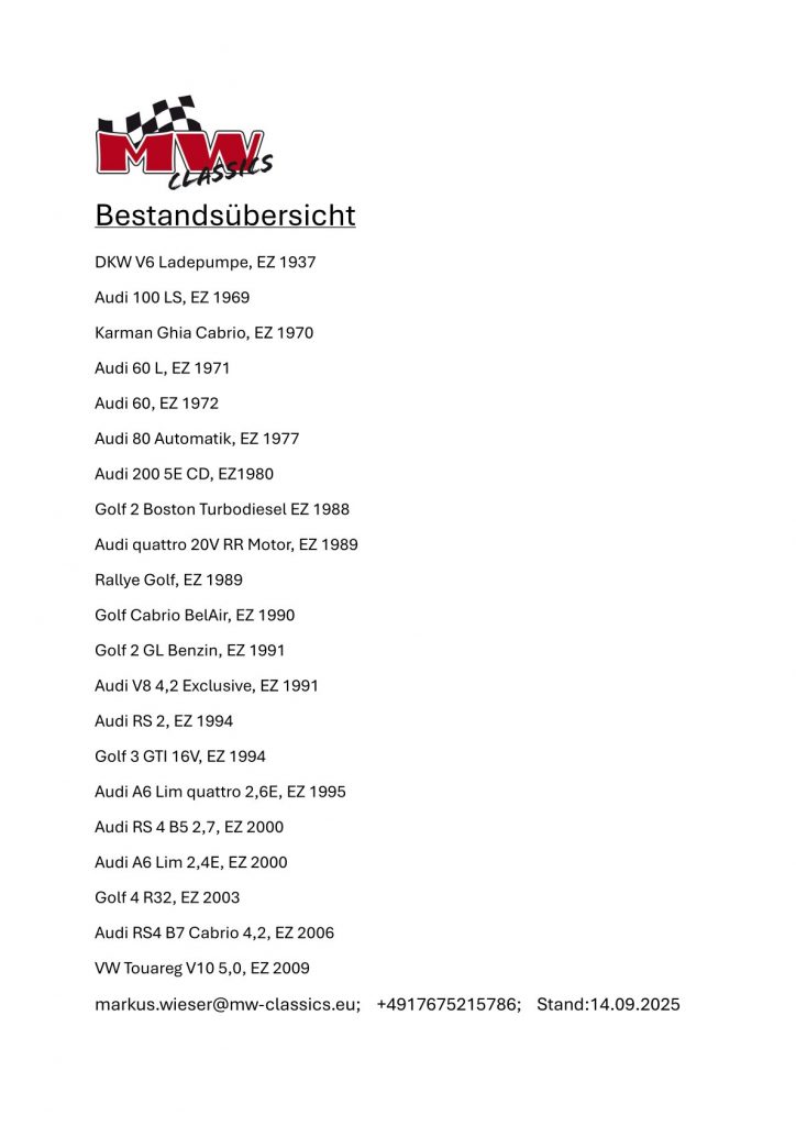 Apropos Punkt: Der umtriebige Markus hat eine Entscheidung getroffen: „Ich verkaufe alle meine Fahrzeuge, darum schick ich dir die Liste.“ MW (Markus Wieser) Classics trennt sich von all den wunderbaren Fahrzeugen. Ja, ich darf euch das erzählen, der Markus hat’s mir erlaubt. Wer also noch keine konkreten Pläne für sein Weihnachtsgeld, den Jahresend-Bonus oder die Erbschaft und nur etwas Benzin im Blut hat, leckt sich bei der Lektüre der Bestandsliste die Finger. Bei Interesse meldet ihr euch einfach bei Markus (siehe unten auf der Bestandsübersicht).