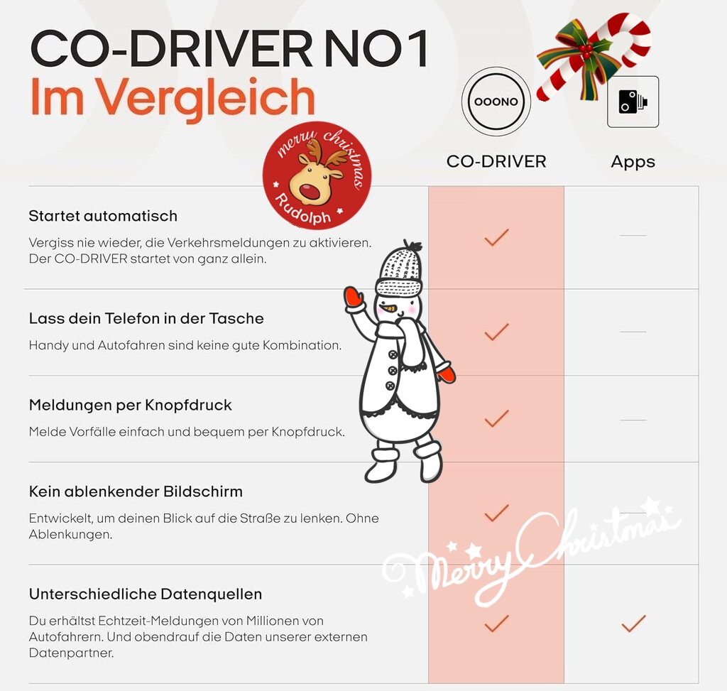 Der CO-Driver NO1 ist ein batteriebetriebenes Verkehrswarngerät, das per Bluetooth mit einer Smartphone-App verbunden wird. In Echtzeit warnt es vor Gefahrenstellen, Unfällen und – je nach rechtlicher Situation – auch vor Geschwindigkeitskontrollen. Die Informationen stammen von Community-Mitgliedern, unter anderem von Diensten wie Blitzer.de, und das alles ohne kostenpflichtiges Abo.