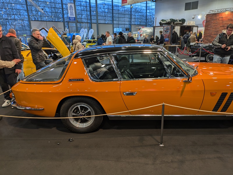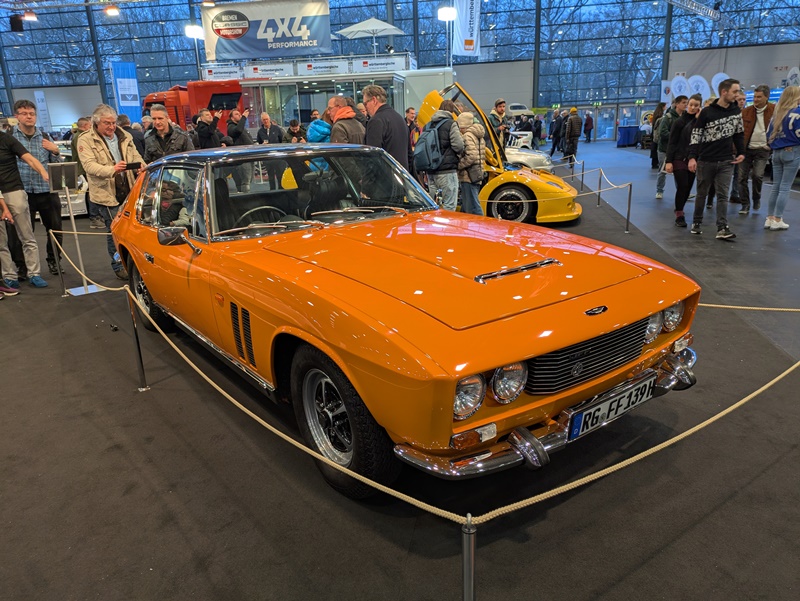 Recht hat er. Wobei die Sicherheitstechnik mit ABS und Allradantrieb eigentlich nur das zweite Argument war. Jensens Hauptverkaufsargument war, wie die Tafel es formulierte, ganz einfach die Einzigartigkeit. Ich stand länger vor dem FF als bei manch anderem Exponat – allein der Gedanke, wie viel Aufwand in die Entwicklung dieses 2025 Kg schweren Fahrzeugs geflossen war, ließ mich nicht los. Danach verabschiedeten Werner und ich uns – er wollte noch in die anderen Hallen, bevor die Messe schloss.