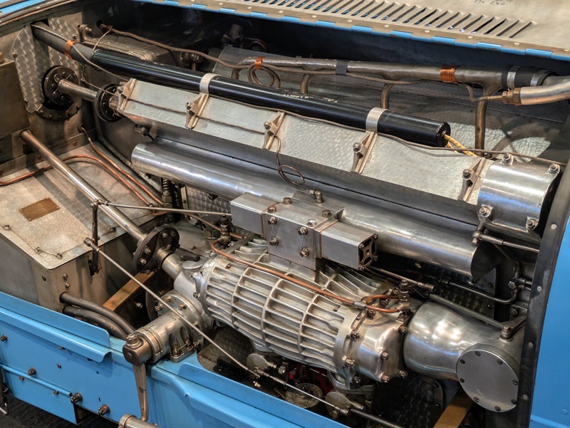 Gleich am Anfang meines Rundgangs stand ein Exponat, das mich sofort stoppen ließ: Der Bugatti Type 53. Ich muss zugeben – ich hätte nie erwartet, dass bereits in den frühen 1930ern jemand auf die Idee kam, einen Grand-Prix-Rennwagen mit Allradantrieb zu bauen. Aber genau das tat Jean Bugatti ab 1931, als er gegen Alfa Romeo und Mercedes-Benz zu bestehen versuchte. Die Inspiration holte er sich von den Miller-Rennwagen aus den USA – ein verwegenes Konzept, das aus einer echten Not entstand: Die schmalen Reifen dieser Epoche waren bei den explodierenden Leistungszahlen längst zum größten Problem geworden.