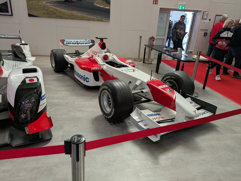 Der Formel-1-Bolide von Timo Glock und Jarno Trulli stand da wie ein Raumschiff aus einer anderen Ära – flach, breit, und mit mehr Aerodynamik-Finessen als ich Finger an beiden Händen habe. Daneben die beiden Le-Mans-Rennwagen, gezeichnet für die 24-Stunden-Schlachten an der Sarthe. Man konnte die Geschichten förmlich riechen: Gummi, Benzin, Adrenalin, Dramen, aber auch Triumphe.
