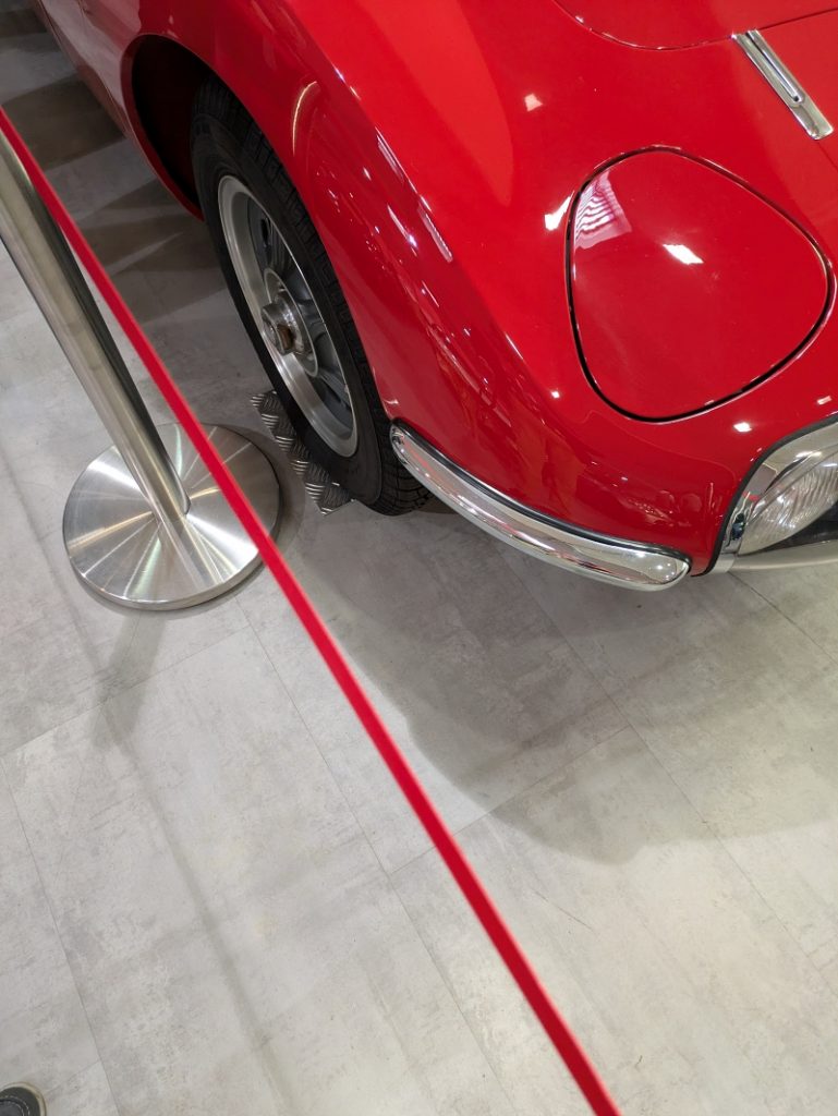 Das Besondere an der Toyota Collection: Man darf die Fahrzeuge anfassen. Türen öffnen. Ins Cockpit schauen. Bei manchen sogar einsteigen. Kein „Bitte nicht berühren“-Schild weit und breit. Stattdessen: „Bitte erleben Sie unsere Geschichte.“ Vorsicht fragte ich vor meinem Besuch nach, ob ich meine Hündin Vroni mitbringen dürfte. Die Antwort von der Toyota Collection war einfach umwerfend: Hunde an der Leine dürfen rein, aber bitte nicht in die Autos!