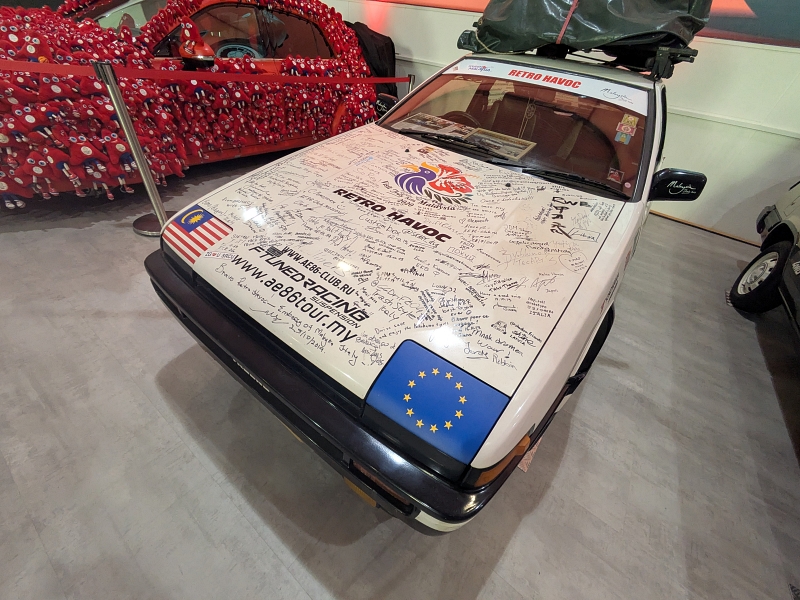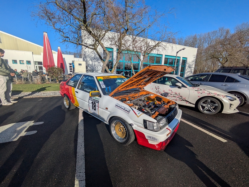 Bevor ich ging, schlenderte ich noch einmal über den Parkplatz. Die Fahrzeuge, die hier standen, hätten eine eigene Ausstellung verdient. Ein Supra MK4 in knalligem rot – selten wie ein freundlicher Finanzbeamter. Ein authentischer Corolla AE86, der aussah, als wäre er direkt aus einem Tourenwagen-Startfeld der 1980er Jahre entsprungen. Mit so einem Tourenwagen gewann mein viel zu früh verstorbener Freund Rudi Sazma die 1600er Klasse beim 24 Stunden-Rennen auf dem Nürburgring. Und Lexus aller Couleur, Celicas, Camrys oder MR2 – mehr, als in ein klassisches Auto-Quartett passen. Manche Besucher kommen offenbar für die Collection, andere für den Parkplatz. Und die Klugen genießen beides.