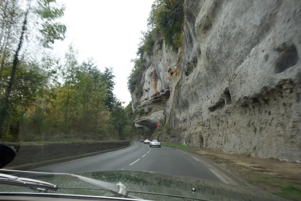 Anfang Oktober, erster Tag unserer Oldtimerreise durch das Périgord. Die Sonne lacht, die Motoren schnurren, die Stimmung könnte kaum besser sein. Unsere erste Pause machen wir in Les Eyzies-de-Tayac – Welthauptstadt der Vorgeschichte und für mich an diesem Morgen: Schauplatz meiner persönlichsten Katastrophe. Der Ort ist wunderschön, eingebettet ins Tal der Vézère, umgeben von steilen Kalksteinfelsen voller prähistorischer Höhlen. Wäre ich nicht gleich so abgelenkt gewesen, hätte ich vielleicht sogar eine davon bemerkt.