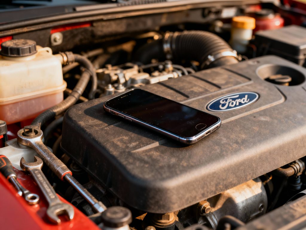 Wolfgang öffnet die Motorhaube des Rangers und erklärt mir alles am laufenden Objekt. Ich nicke, höre zu – und dann sehe ich es. Da, in einer Ecke des Motorraums, hat sich ein Smartphone verkrochen. Klein, schwarz, verloren. Und gottlob eingeklemmt, sodass es die Rückfahrt überlebt hat. Meins ist es diesmal nicht – Beate und Wolfgang haben ihre Geräte griffbereit. „Das ist wahrscheinlich vom Werkstattmenschen!“, vermutet Wolfgang, und ehe ich noch etwas sagen kann, sitzen die beiden schon wieder im Auto.