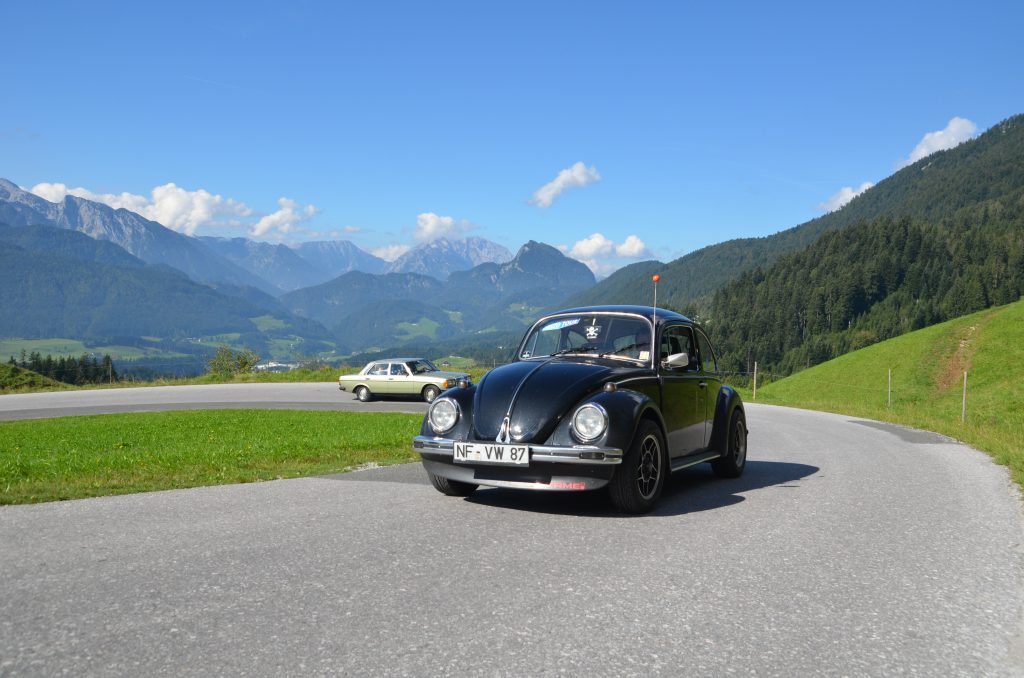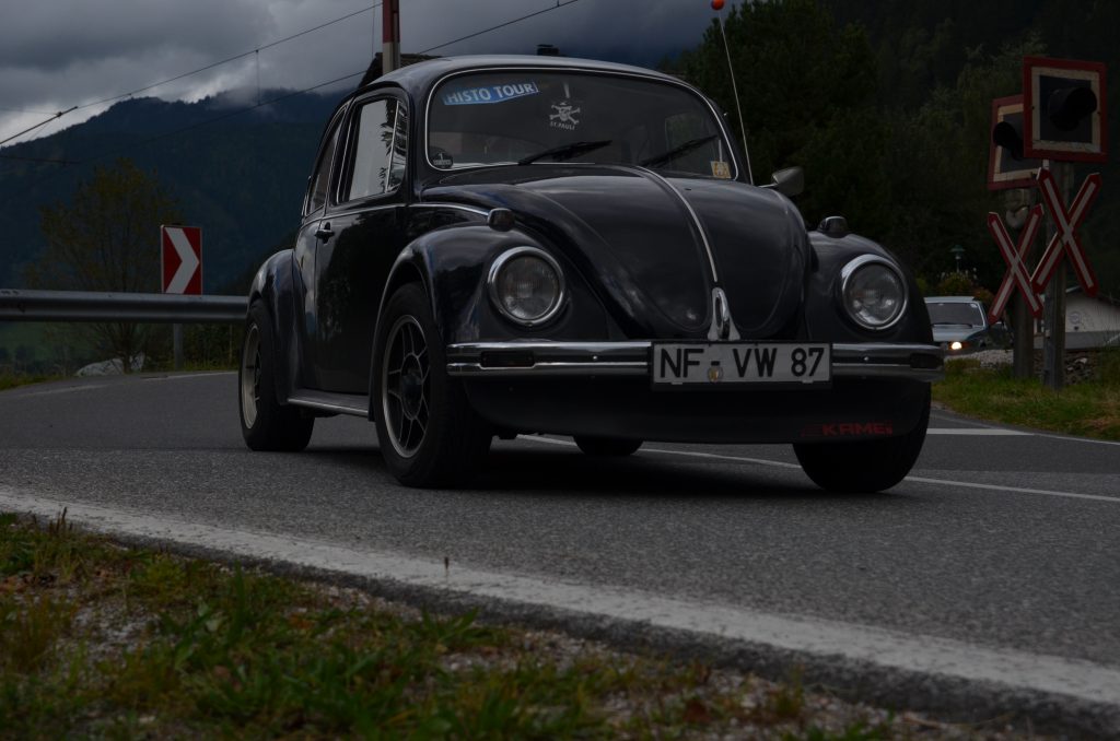 Doch die Vinschgau-Tour 2018 ist in meiner persönlichen Ereignischronik als eine der irrsten und schwierigsten überhaupt verewigt — und ich habe in meiner Zeit als Tourveranstalter rund 150 Touren auf dem Buckel. Fernpass-Stau der Extraklasse — erst gegen frühen Abend im Hotel. Und dann auf der Tour: Straßensperre wegen eines schweren Motorradunfalls. Marc ist einen Augenblick abgelenkt und kracht in das Heck eines blauen VW Karmann Ghia, gesteuert von einem anderen Teilnehmer der Gruppe. Die Nerven liegen jetzt bei allen Beteiligten blank. Gott sei Dank ist niemand verletzt — und Tausendsassa Achim legt los: Mit einem Holzbalken zieht er das eingedrückte Heck des Karmann Ghia die wenigen Zentimeter zurück, damit die Riemenscheibe des VW-Motors wieder frei läuft. Wenig später rollt der Wagen aus eigener Kraft zurück zum Hotel. Improvisationstalent in Reinkultur.
