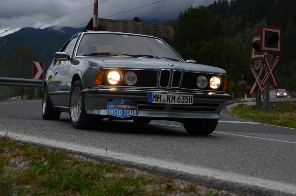 Und jetzt kommt der Teil der Geschichte, bei dem ich zugeben muss, dass ich ein kleines bisschen geschummelt habe. Ich wusste natürlich, dass sich auch Marc aus Essen-Kettwig zu unserer Dachstein Tour angemeldet hatte — mit einem — ihr ahnt es bereits — hellblauen BMW 628 CSi. Ebenfalls ein Haifischmaul, nur in der freundlicheren Farbvariante. Dafür aber mit glänzend polierten Tiefbettfelgen.